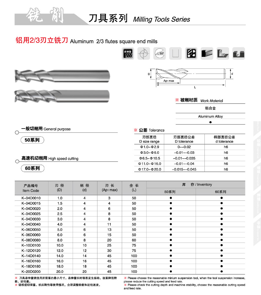 鋁用2/3刃立銑刀