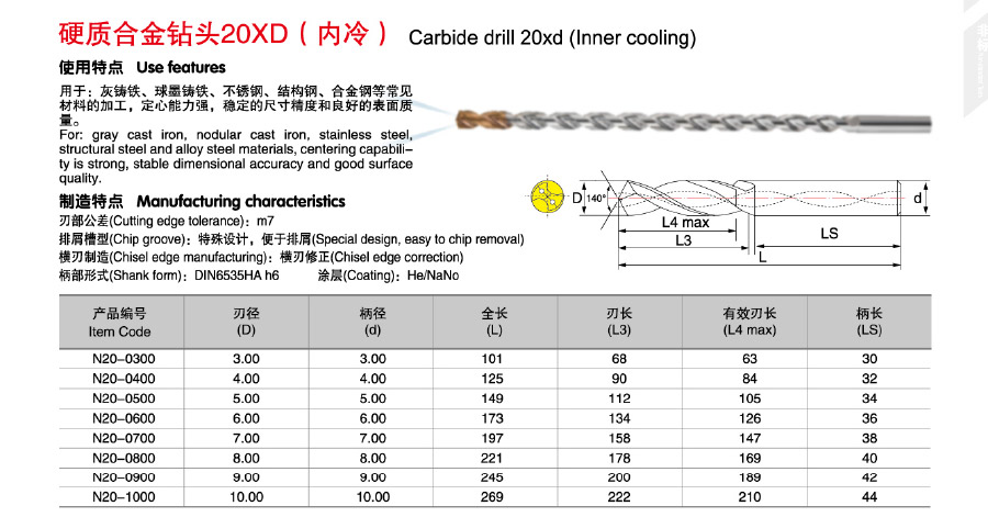 硬質(zhì)合金鉆頭20XD ( 內(nèi)冷)